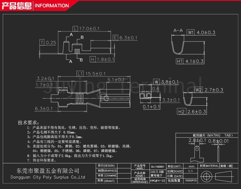 批发现货2.8 110端子 直形插簧母端子 2.8*0.8 适用22-24号电线