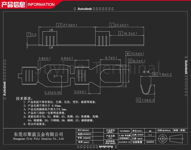 生产厂家现货6.2y形端子 6.2 U形端子 6.2叉形 6.3连接端子